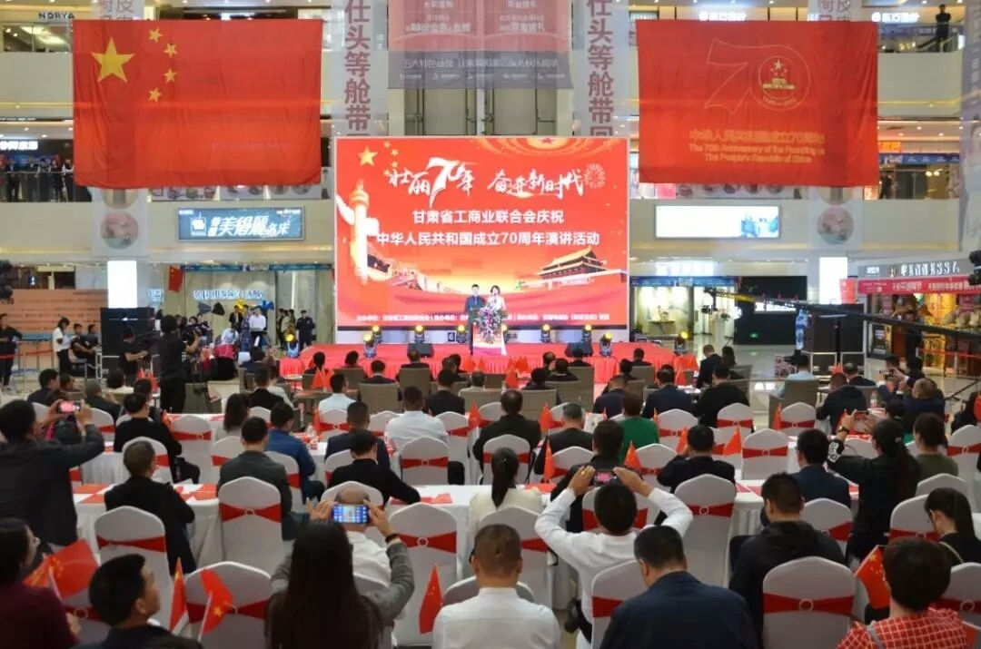 9月26日,在新中國成立70周年之際,甘肅省工商聯(lián)“壯麗 70 年·奮進新時代”慶祝中華人民共和國成立70周年演講活動在蘭州舉行。本次活動以學習貫徹習近平總書記視察甘肅重要講話精神為統(tǒng)領,以“壯麗 70 年·奮進新時代”為主題,通過演講、歌唱、觀看短片等形式充分展現(xiàn)甘肅省非公有制經(jīng)濟人士的家國情懷和精神風貌,走進企業(yè)、凝聚共識,與廣大非公有制經(jīng)濟人士共同回望偉大歷程、總結(jié)寶貴經(jīng)驗、感悟輝煌成就,共慶祖國華誕、共享偉大榮光、共話家國情懷,引領廣大民營企業(yè)家以更加昂揚的精神、更加飽滿的熱情投身到嶄新事業(yè)和實踐中去。