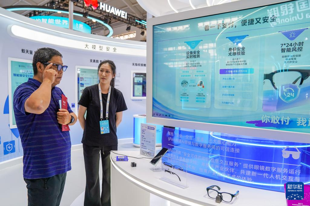 9月15日,觀眾在云南昆明舉行的2025年國家網(wǎng)絡(luò)安全宣傳周配套活動——網(wǎng)絡(luò)安全博覽會暨網(wǎng)絡(luò)安全產(chǎn)品和服務(wù)國際推介會上體驗智能眼鏡。新華社記者 彭奕凱 攝