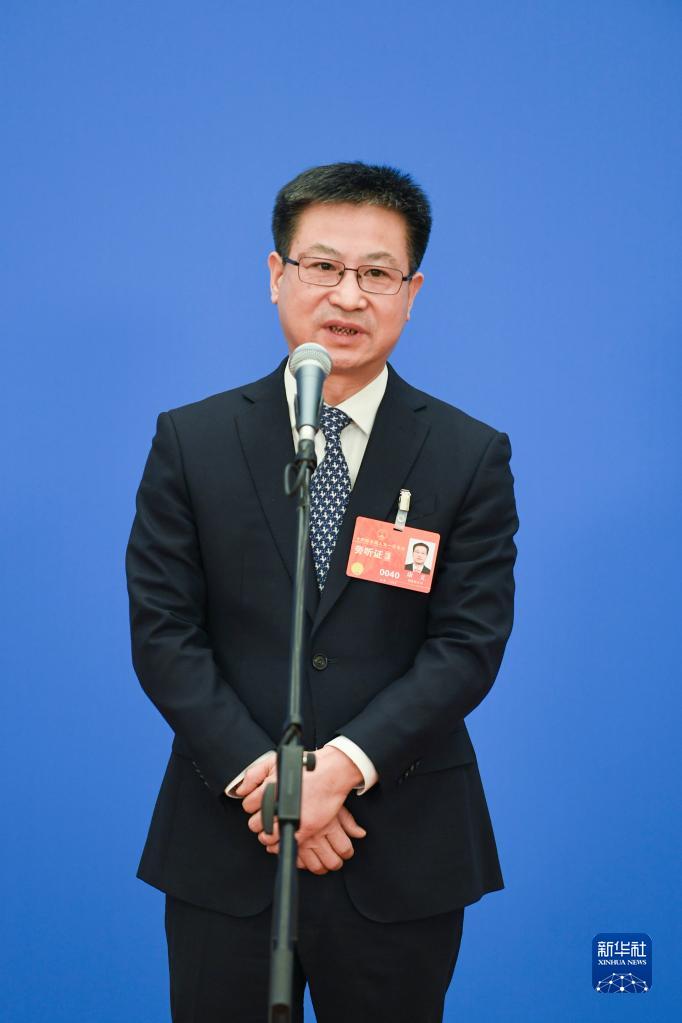 3月12日,第十四屆全國人民代表大會第一次會議舉行第三場“部長通道”采訪活動。這是國家統(tǒng)計局局長康義接受媒體采訪。新華社記者 金皓原 攝