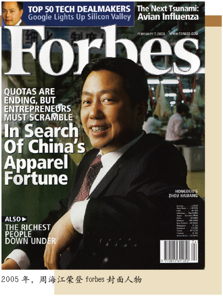 周海江的個(gè)體經(jīng)歷是一代中國(guó)民營(yíng)企業(yè)家的一個(gè)縮影。正是這個(gè)群體的奮力崛起、這群人的奮發(fā)圖強(qiáng),才有了中國(guó)民營(yíng)經(jīng)濟(jì)乃至中國(guó)經(jīng)濟(jì)今時(shí)今日的局面。在周海江的人生中,有許多可以大書(shū)特書(shū)的情節(jié)。2001年,他主導(dǎo)紅豆集團(tuán)在資本市場(chǎng)大展拳腳。2005年,他以新時(shí)代中國(guó)民營(yíng)企業(yè)家的形象登上《福布斯》封面……