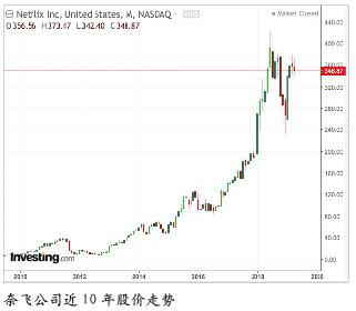 但這絲毫不影響資本市場對它的青睞。作為流媒體行業(yè)的巨頭,奈飛曾被外界譽為一家現(xiàn)象級的公司,它靠股價漲幅掀起一輪“奈飛現(xiàn)象”。在2009-2018年的10年間,奈飛曾創(chuàng)造6168.47%的漲幅,這也是美股中漲幅最高的,在FAANG中相當(dāng)于亞馬遜的2.2倍、蘋果的4.5倍。2018年6月21日,奈飛股價達到423.2美元/股、市值達到1840億美元,這也讓它超越迪士尼成為全球最大媒體公司。