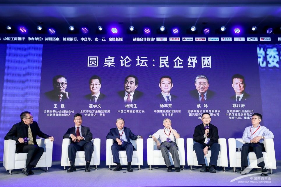 年會(huì)現(xiàn)場,在全聯(lián)并購公會(huì)創(chuàng)始會(huì)長王巍的主持下,北京市地方金融監(jiān)管局黨組書記、局長霍學(xué)文,中國銀保監(jiān)會(huì)國際咨詢委員會(huì)委員、中國工商銀行原行長楊凱生,全聯(lián)并購公會(huì)四川工作委員會(huì)主任、中國建設(shè)銀行四川省分行行長楊豐來,全聯(lián)并購公會(huì)常務(wù)副會(huì)長、國元證券股份有限公司原董事長蔡詠,全聯(lián)并購公會(huì)副會(huì)長、中航信托股份有限公司黨委書記、董事長姚江濤五位嘉賓圍繞“民企紓困”這一主題展開討論對(duì)話。以下為圓桌論壇內(nèi)容實(shí)錄(根據(jù)速記稿整理,未經(jīng)嘉賓本人確認(rèn)):
