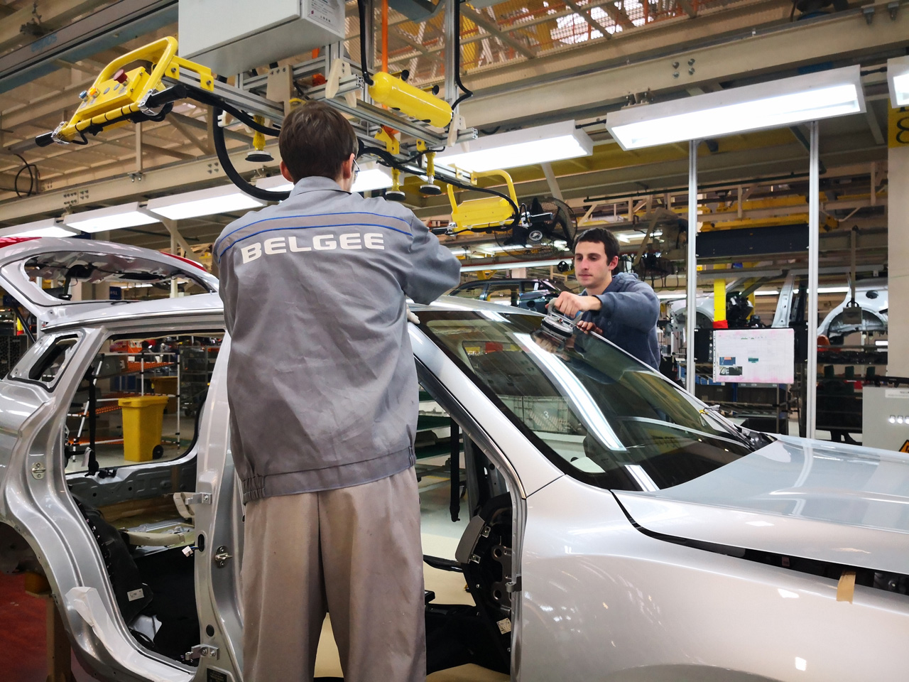 這是2017年12月1日在白俄羅斯首都明斯克東北方向50公里處的白俄羅斯吉利全散件汽車制造廠拍攝的總裝車間。 張若玄 攝